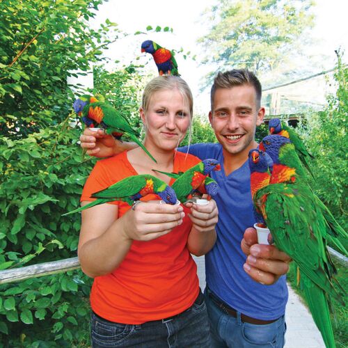 Die 22 Hektar große Parklandschaft zeigt Tiere von allen Kontinenten in weitläufigen, naturnahen und für den Besucher begehbaren Anlagen! Tägliche Tier - und Flugshows nehmen die Besucher mit auf eine kleine Weltreise. Mehrere Spielwelten lassen die Herzen von kleinen und großen Abenteurern höher schlagen.