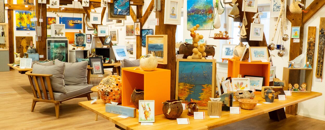 Eine breit gefächerte Vielfalt einzigartiger Bilder, Fotografien und Skulpturen bis hin zu handgemachter Töpferkunst, glänzendem Schmuck und vielem mehr. Neben den Ausstellungsstücken lädt unsere Galerie bei Kaffee und kühlen Getränken zum Verweilen, zum Stöbern und zum Kaufen ein.