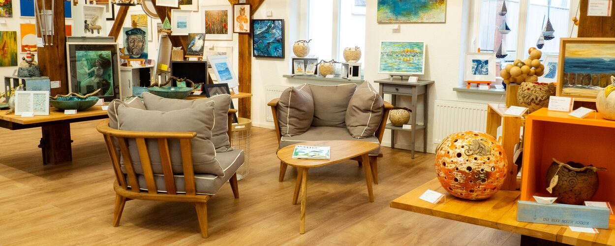 Die etwas andere Galerie, in der Kunst, Kunsthandwerk, Keramik, Schmuck, Holz, Metall zu finden ist, von Künstlern - Hobby-, Semi-, oder Vollprofi - auf alle Fälle aus der Region, Barth und Vorpommern-Rügen. Und für jeden Geschmack ist etwas dabei. Ein Garten zum Verweilen und Kaffee trinken, ein Märchenrätsel für Kinder und viele kleine Feinheiten gibt es für Besucher zu entdecken.